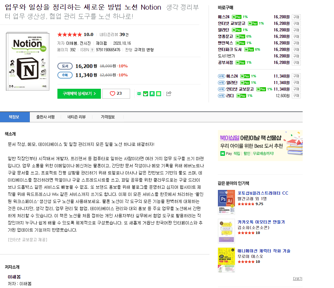 이 과정에서 전시진님을 떠올리지 않을 수 없습니다. 당시 시진님은 노션에 대한 열정이 엄청나셨습니다. 아마 한국에 계신 분들 중 제일이라고 봐도 좋을 정도였습니다. 그떄 시진님이랑 예전에 나눴던 이야기가 기억났습니다. "전 노션으로 홍순성 대표님 같은 사람이 되고 싶어요." 당시 그 말이 인상적이여 시진님에게 연락을 취했습니다. 시진님 역시 책을 내고 싶은 생각은 있으셨으나 처음 경험하시는 출판 및 출판 기획서에 어려움을 느끼고 계셨습니다. 이때, 마침 저에게 연락이 왔던 것이고 시진님은 흔쾌히 함께 할 것을 승낙을 해주십니다. 그리고 해당 책은 2019년 2분기에 바로 출판이 됩니다.